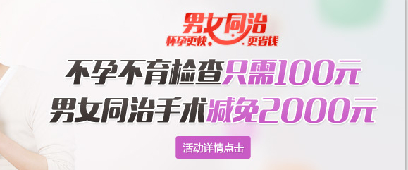 活动期间(4月15日——5月15日),凡夫妻双方来仁爱院进行不孕不育治疗,检查只需100元。如果检查出来双方均需要手术治疗,双方均可申请微创手术援助,最高可省2000元。通过夫妻全面的专科诊治,能让怀孕率大幅度提升50%以上,让更多的不孕不育患者早日怀上健康聪明的宝宝!